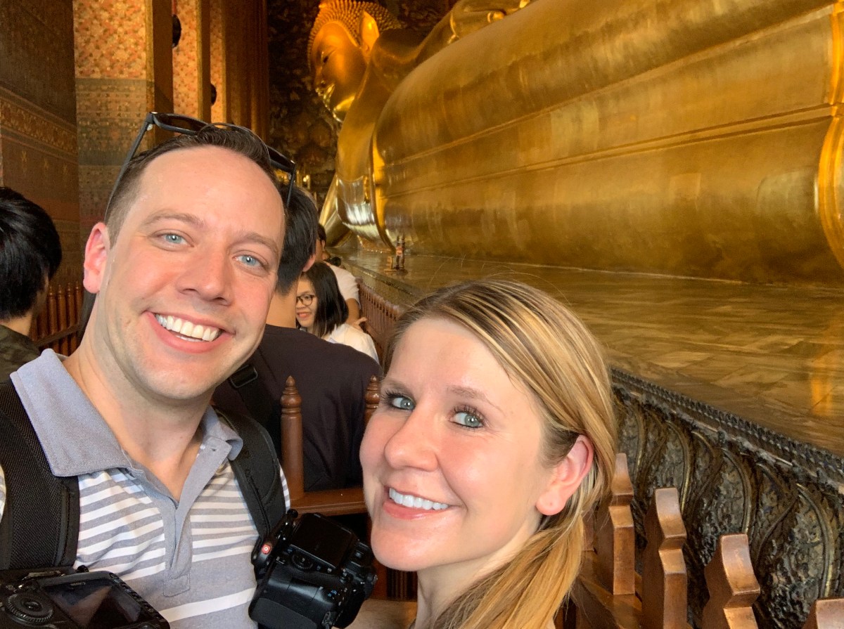(You can see how massive this reclining Buddha is. He was photobombing our selfie).