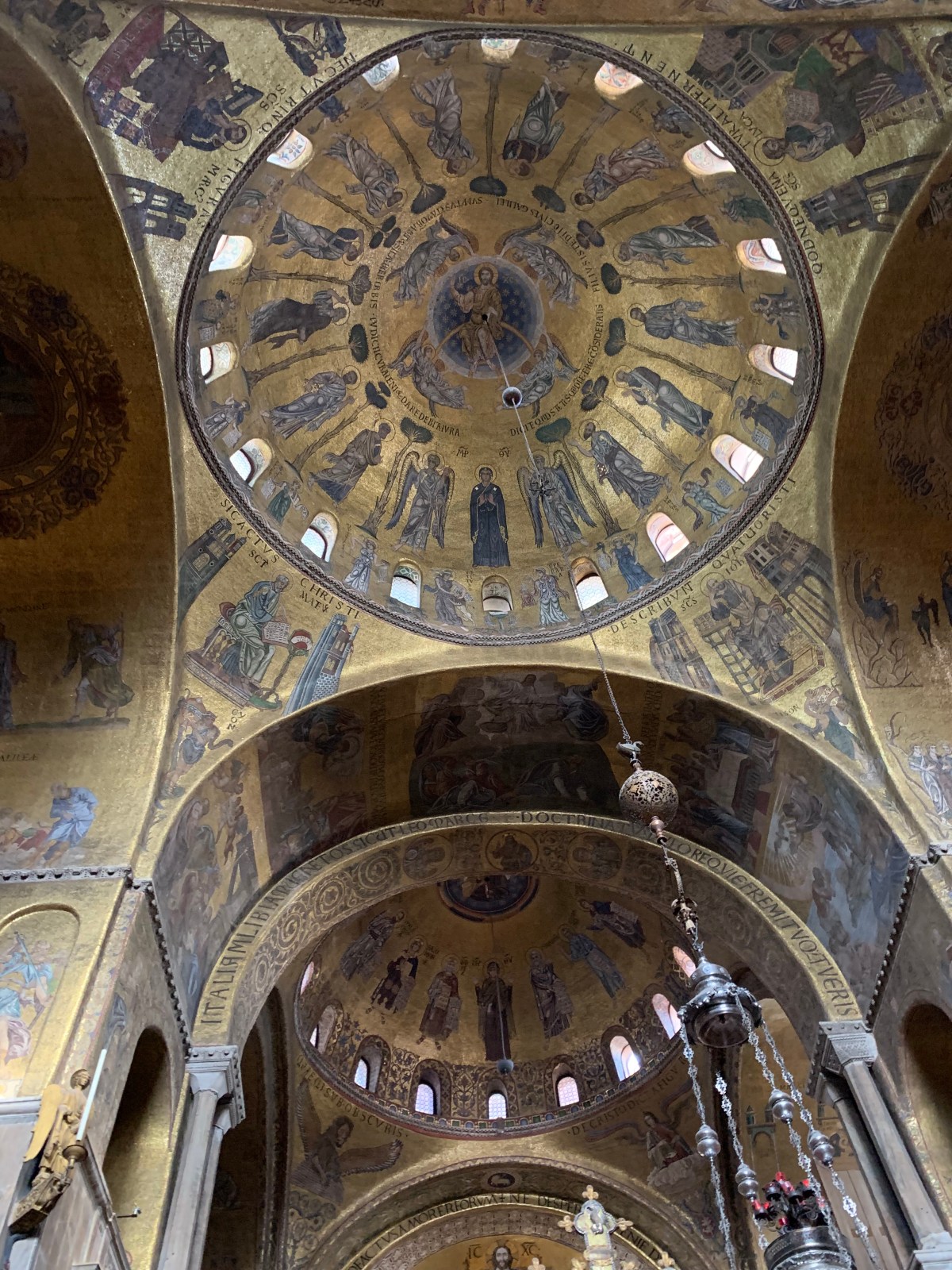 We visited St. Mark’s Basilica – which was a very beautiful church. The only difference with this one is there was no pictures allowed. Whoops. One of the workers scolded me – but let’s be real. Besides the Sistine Chapel – every other church we visited in Italy allowed pictures. Not sure why they were any different? Please see the evidence that I collected – I loved the blue and gold in this one. And all of the windows in the dome.