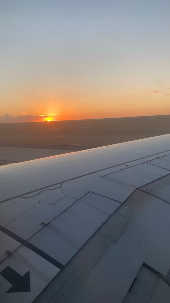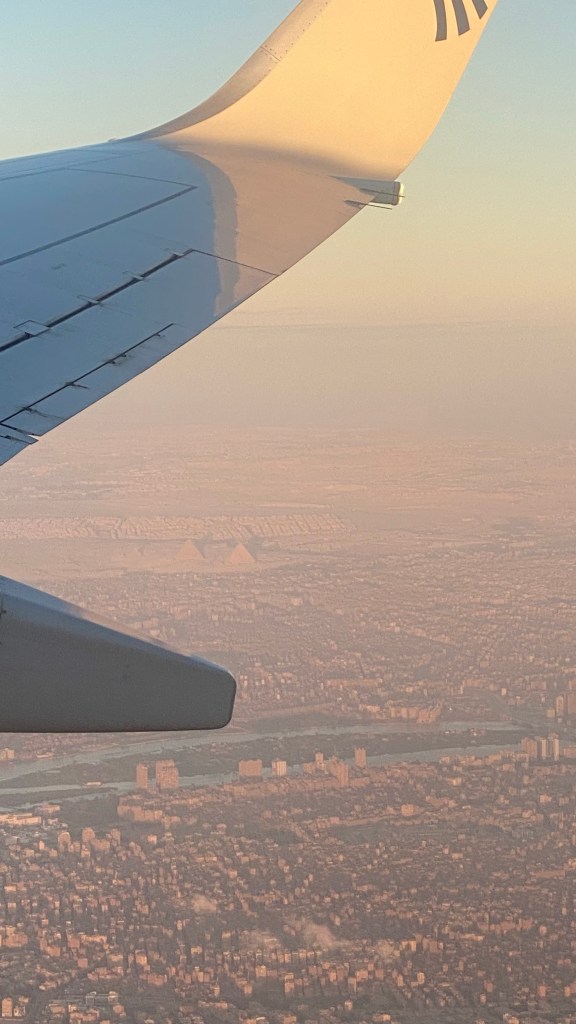 Our flight took off around 6:00 am from Cairo to Aswan. It was a pretty quick flight – scheduled to be about an hour and 15 minutes (give or take a few). We didn’t run into any issues at the airport, and we got to watch the sun come up! AND we could see the pyramids as we flew out of the area.