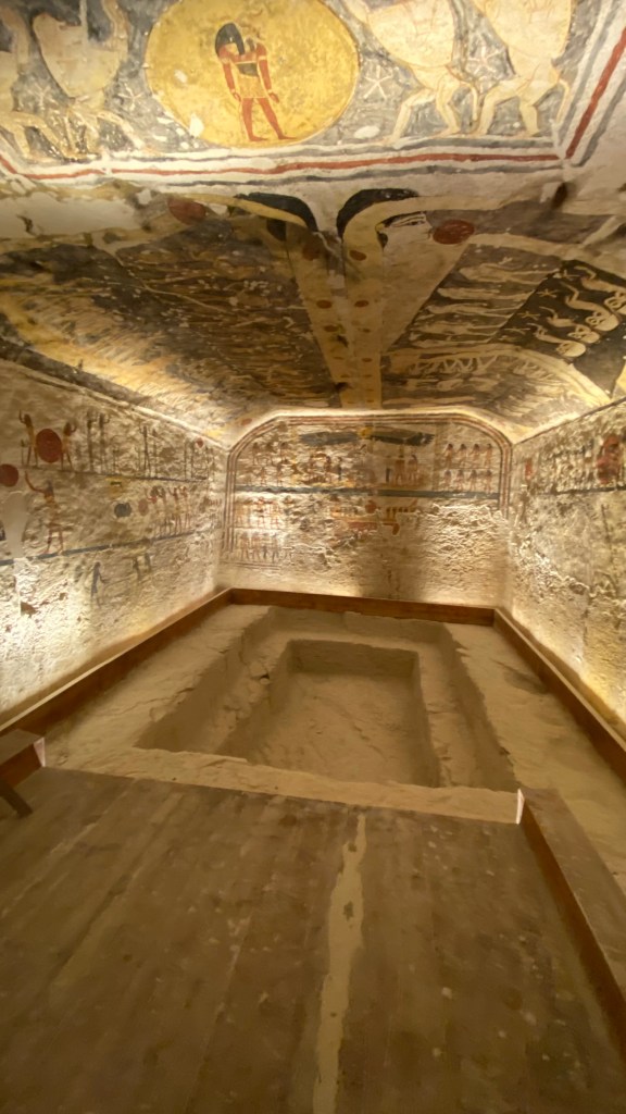 All of the walls were decorated with different gods and documenting the king’s journey through the underworld. Most of the tombs had been cleared out or robbed, all except for the most famous one. You know who!