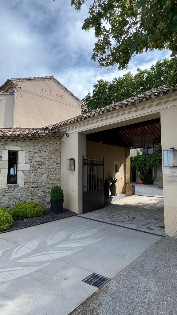 We started our day wine tasting at Domaine la Fourmone. Jon and Yvonne had previously been here and had a great experience. When we arrived it was easy to see why they liked it – they had beautiful grounds and a small tasting room. It was only us with our server – and we really enjoyed the wine. At this point our suitcases are bursting at the seams and we were running out of bubble wrap. Because of the shipping costs we weren’t able to take much, Andy and I left with only one bottle.