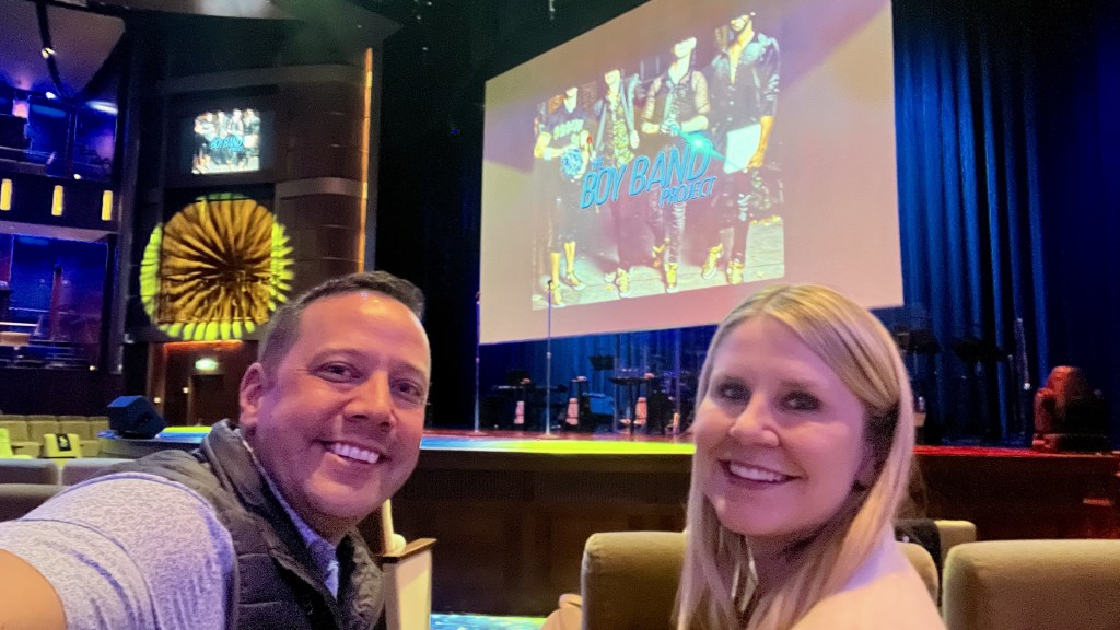 We were also incredibly excited because the entertainment that night was The Boy Band Project. It did not disappoint – the band took us through some of the early boy bands – think Jackson 5! All the way up to my favorite band, Backstreet Boys. It was a ton of fun. They were really interactive and encouraged the crowd to participate in the show and singing. It was definitely one of the highlights of our trip!