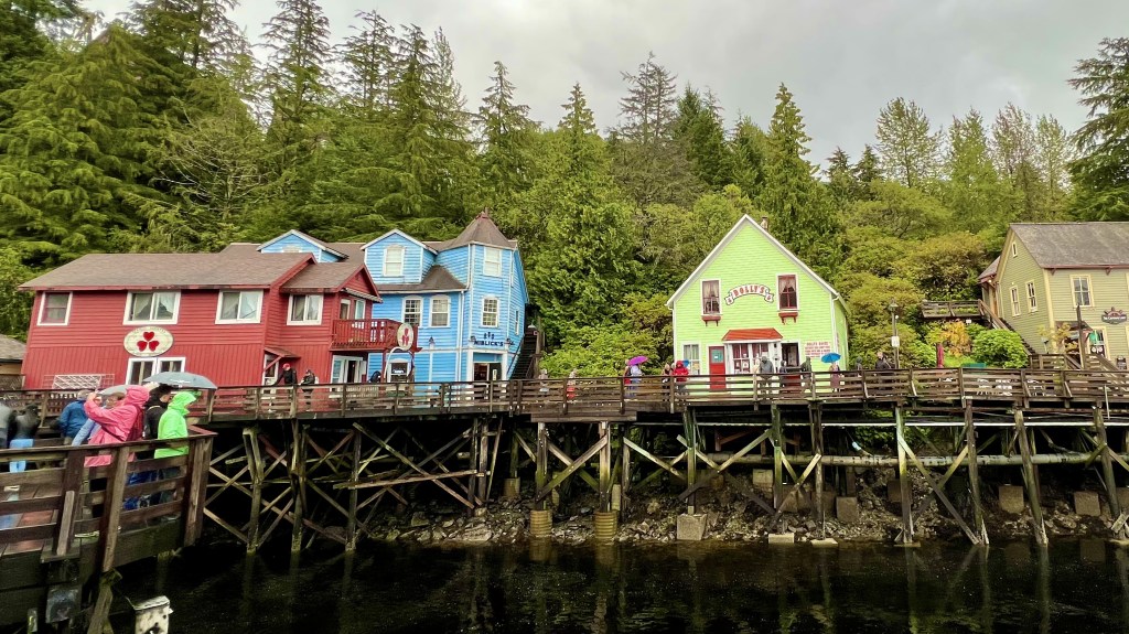 We had booked a “Duck” tour – an amphibious vehicle that can both drive on land and in the water. It was a brief tour on the water, but gave a good overview of the history of the city. (Andy and I wanted to explore some of the locations after we got off of the Duck). Once we got off of the Duck, we dropped my parents back off at the ship. We continued on to walk around Ketchikan. The rain started to pick up, which wasn’t ideal.