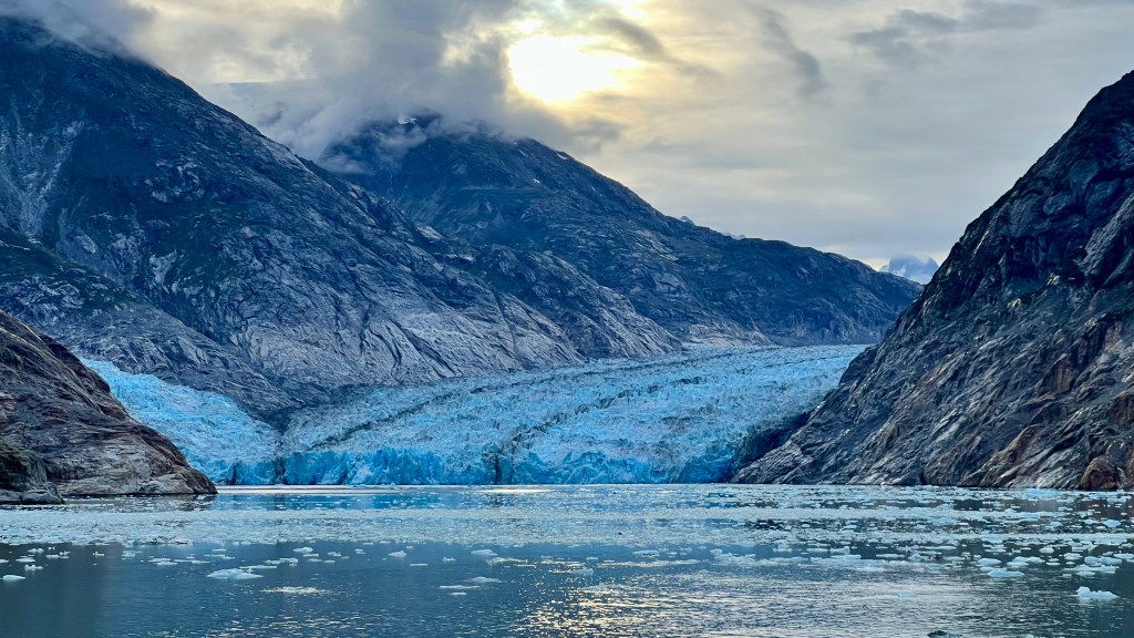 We woke up early because we knew we would be cruising past the Dawes glacier. We were tired, but really wanted to see it. Our room had an obstructed view – so we bundled up and headed to a different deck. It was amazing to see the rugged landscape and the glacier in the distance.