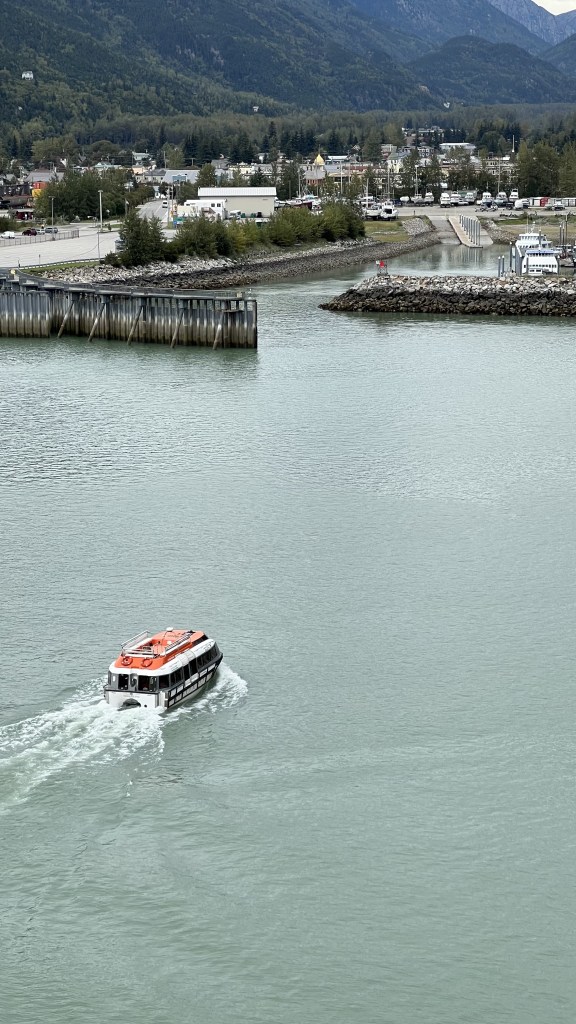 We docked in Skagway early in the morning – we had to take a tender to shore because there had been a landslide in previous years that had damaged the port. The tenders (life boats) actually reminded me of a Star Wars like vehicle. I’ll let you be the judge of that!