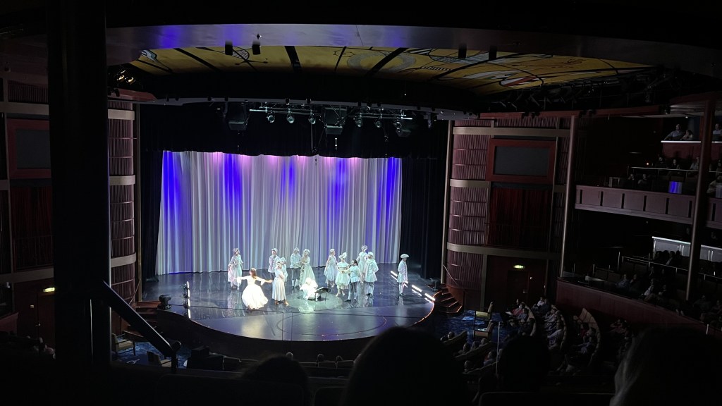 The entertainment team put on one more show – naturally, this took place during the day since most people were going into Victoria that evening. They were playing a bunch of famous Broadway hits – we were excited when we heard both a song from In the Heights and Hamilton by Lin Manuel Miranda! Of course, the other big names were there too – like Rent, Les Miserables, Waitress, etc.