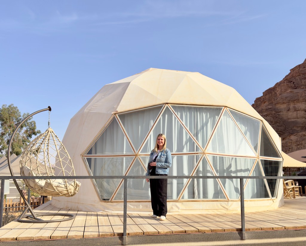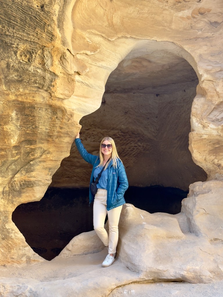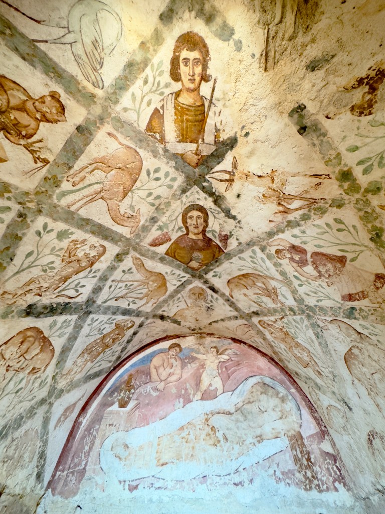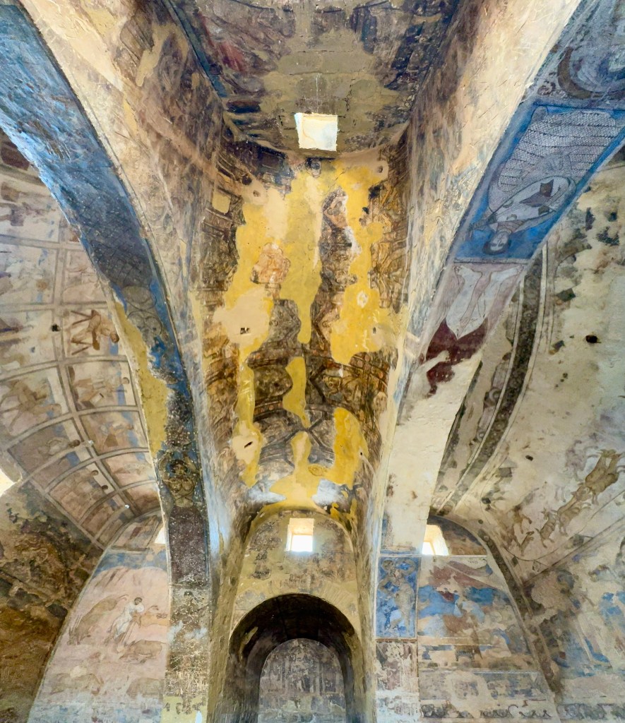 From there, we made our way to a bathhouse that is a UNSECO world heritage site (Quseir Amra). When we pulled up, it felt like something that inspired Star Wars with its rounded roof. Inside, there were beautiful murals all around. It also served as a hunting pavilion – you would see the connection in some of the murals.