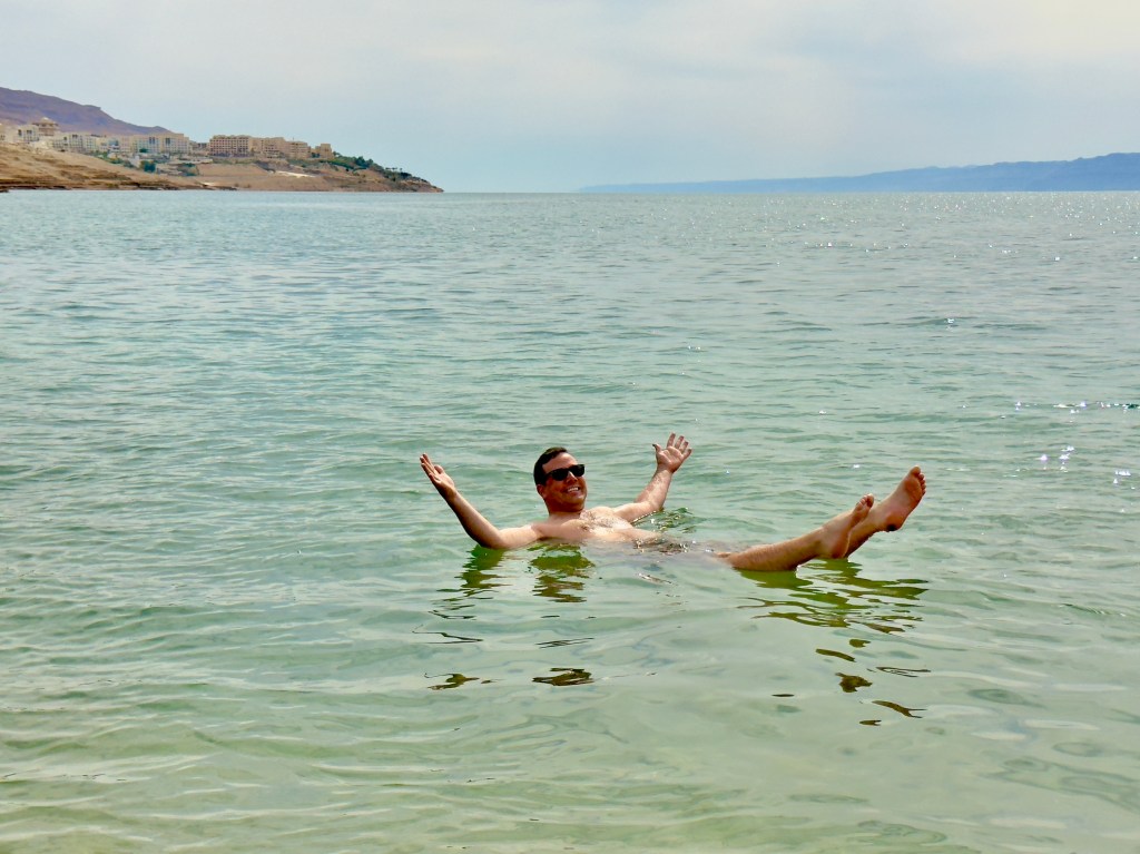 If you’re heading to the Dead Sea, some words of wisdom. Do not, and I repeat do not get the water in your eyes or your mouth! We heard a few people say how vile it tasted – and I can only imagine how badly it burns. The Dead Sea is 9.6% saltier than the ocean. And what we wished we would have known is that the salt can stain your swimmies – so bring something you don’t care if it gets stained. We rinsed ours off 2-3x and ours were fine!