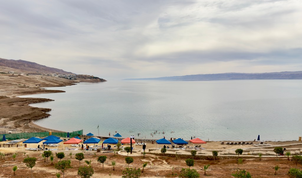 After this last castle we boarded the bus to make our way to the Dead Sea – we were about 2+ hours away now. Our tour group paid for day passes at one of the Dead Sea resorts. It was a beautiful resort! We wish we could have stayed there for a night. (And would highly recommend that area if you are making your way to Jordan!)