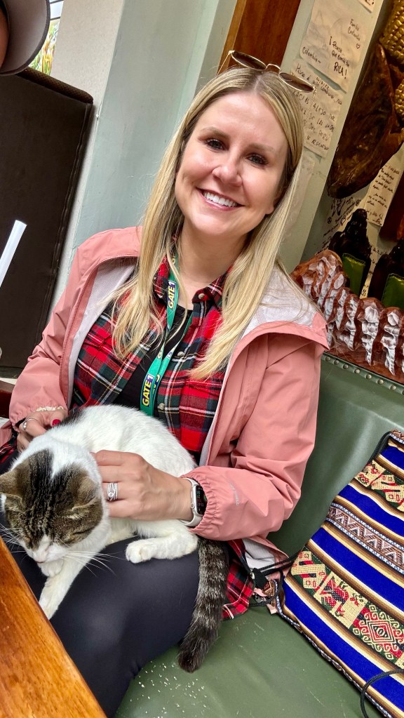 No, he wasn’t homeless. But he was not throwing away his shot! We said yes, and he scooped that up and walked away ecstatic with his prize. Then the restaurant’s cat jumped up into my lap for some love.