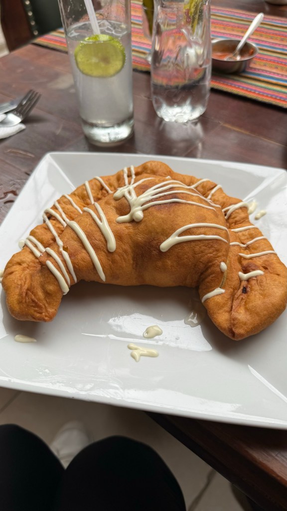 Some people stayed at that restaurant for lunch, but I was really craving an empanada – so we started looking for another restaurant. Once we found one – we had a great view of the Main Street, which was fun to watch all the different people walk by.