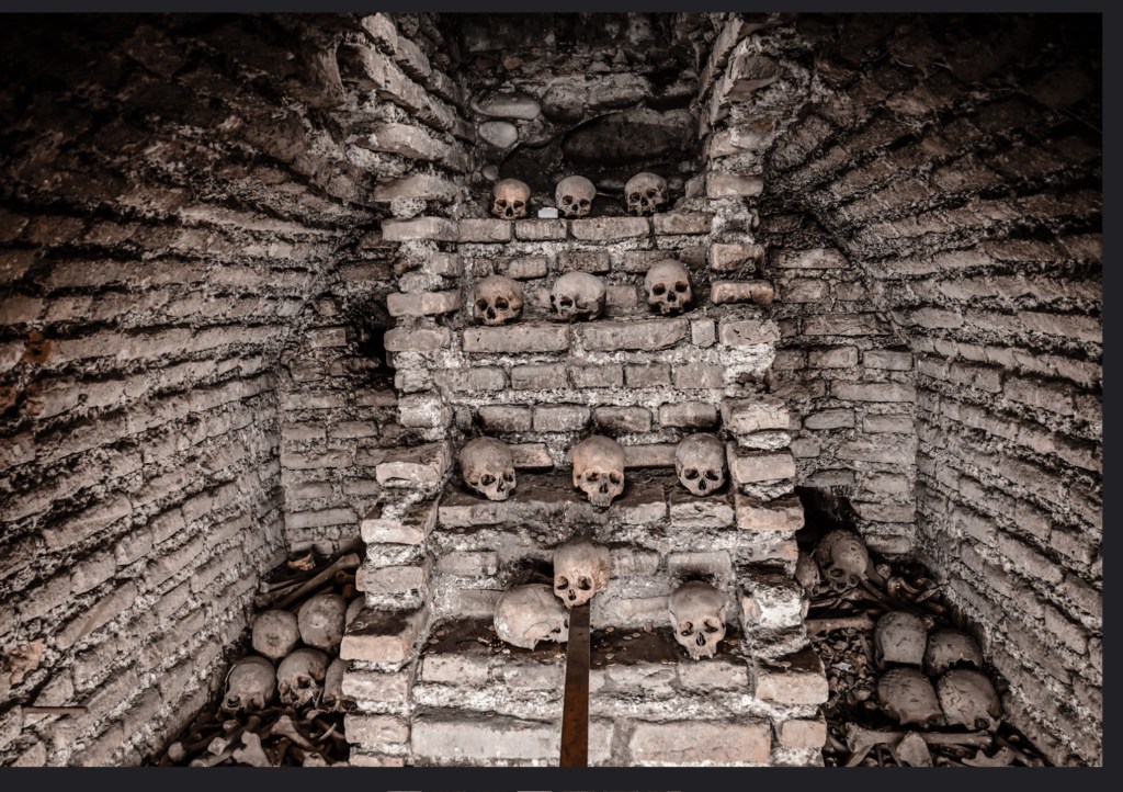 The brotherhood opened the catacombs to the public in 1950. In order to open them, they had to move some of the skeletons to create more of a path. They were displayed in interesting ways – usually the skulls or the femurs (the strongest bones in the body).