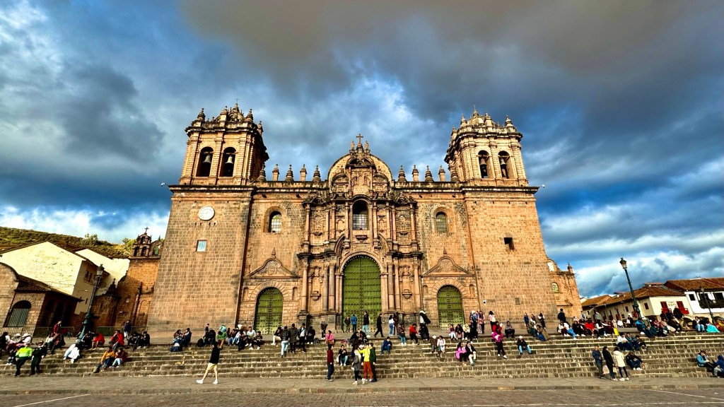 Our last stop of the tour was at the Cusco Cathedral. It was beautiful, but unfortunately you couldn’t take any pictures inside. The Spanish built this church in 1559, and there was a lot of gold and finery lining these walls. Our favorite part was the painting of the Last Supper. A Peruvian artist was hired to paint this – he hadn’t seen it – and was going off their description. What was in the center of the table?