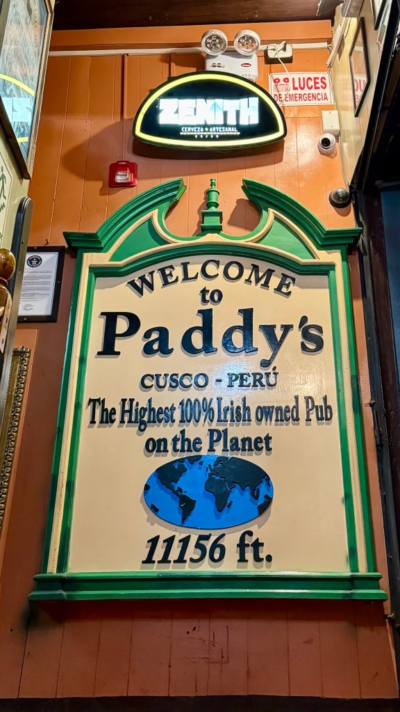 We had a few more recommendations from Mel on our list – so we stayed in the main plaza area. We checked out Paddy’s Irish Pub – which is the highest Irish owned pub on the planet at 11,156 feet. (Makes me wonder if there is a non-Irish owned pub that’s higher?!) After dinner, we got a cocktail from The Black Cat. It was certainly the best caipirinha I’ve had since leaving Brazil last year!